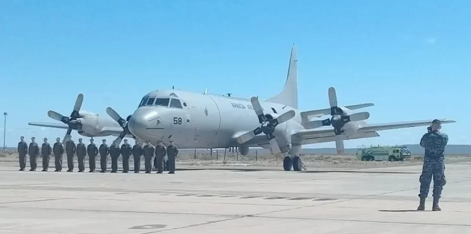 Pasado el mediodía, bajo un sol radiante, aterrizó en la Base Almirante Zar el segundo P-3C Orión que la Armada incorporó para reforzar las tareas de exploración y vigilancia en el Mar Argentino.
