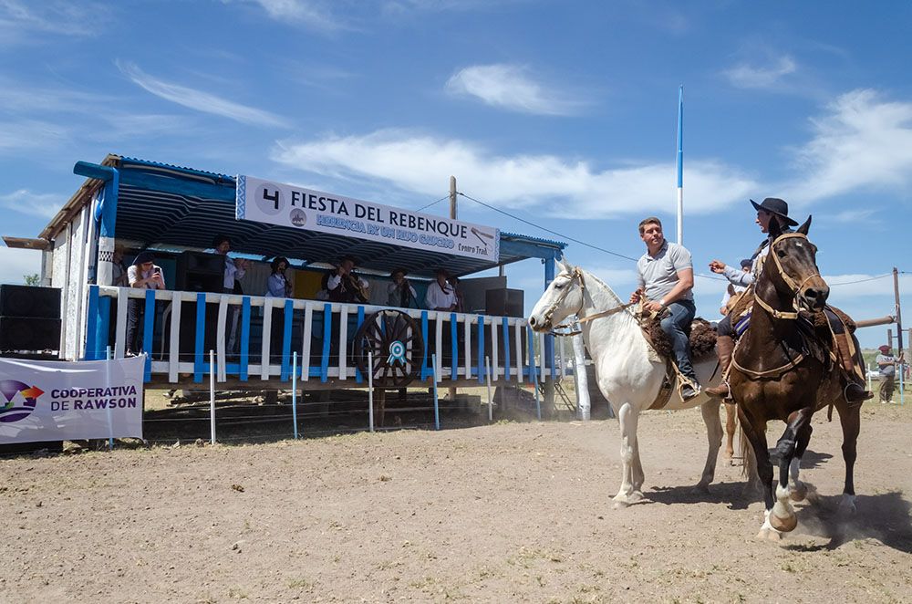 La 4ª edición de la “Fiesta del Rebenque” comenzó este sábado en la chacra de Don Irán Bustos, cercana a la Ruta Nacional Nº 25, en Rawson; y está bajo la organización del Centro Tradicionalista “Herencia para un Hijo Gaucho”.