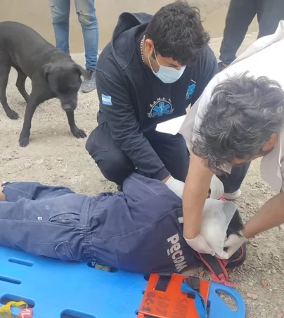 Un suboficial ayudante, actuando en representación de la fuerza interviniente, examinó al herido en el lugar. Tras la evaluación inicial y, dada la naturaleza del trauma, se procedió a solicitar con urgencia la asistencia de una unidad de emergencias médicas.