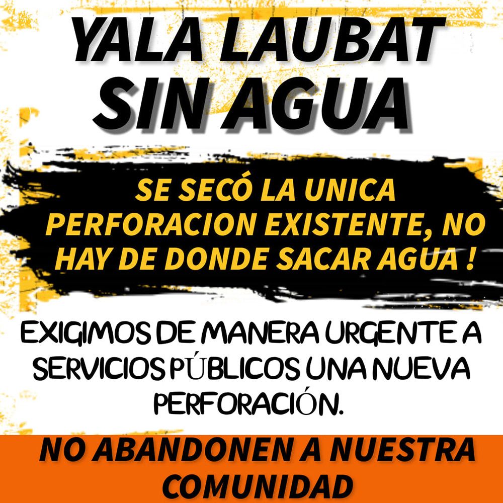 Esta semana se secó la perforación con la cual se abastecía de agua la aldea de Yala Laubat. Están siendo abastecidos con un camión desde Gastre y reclaman que se realice una nueva toma subterránea.