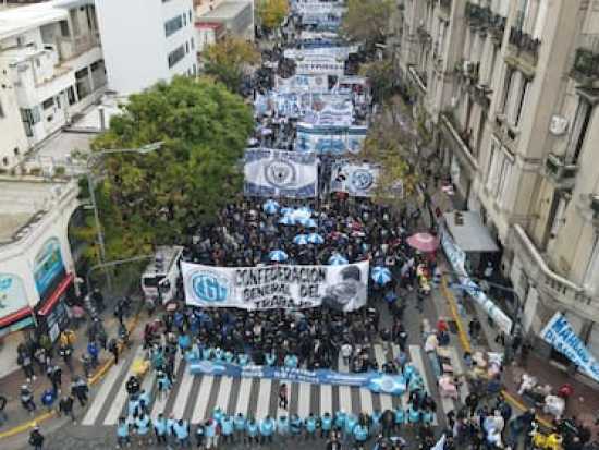 Como parte de su enfrentamiento con el Gobierno, la CGT desplegó su poder de convocatoria en una movilización por el 1° de Mayo que tuvo su epicentro en el monumento Canto al Trabajo, en la avenida Independencia y Paseo Colón. La cúpula cegetista difundió un documento con fuertes reclamos al Gobierno, al que se acusó de instrumentar “un ajuste brutal”. La marcha de hoy fue parte de su hoja de ruta de protestas, que contempla un segundo paro general contra la gestión de Javier Milei dentro de ocho días.