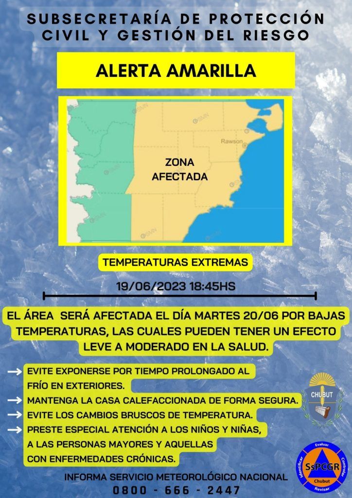 Por otro lado, se ha emitido una alerta por bajas temperaturas extremas que afectará a toda la zona centro y este de la provincia de Chubut. Ante este tipo de alertas, se recomienda tomar precauciones y medidas preventivas, ya que las bajas temperaturas pueden tener efectos negativos en la salud.