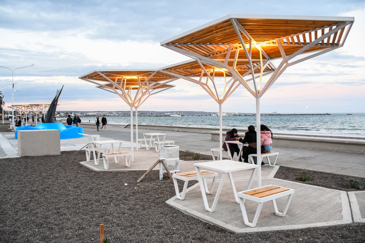En este caso específico, se desarrollaron obras complementarias en los alrededores del monumento a la ballena franca austral que está sobre el Boulevard Brown. Allí, se colocó iluminación, pérgolas, mesas y bancos que ya son disfrutadas por los madrynenses y también por quienes visitan la ciudad y recorren la rambla.