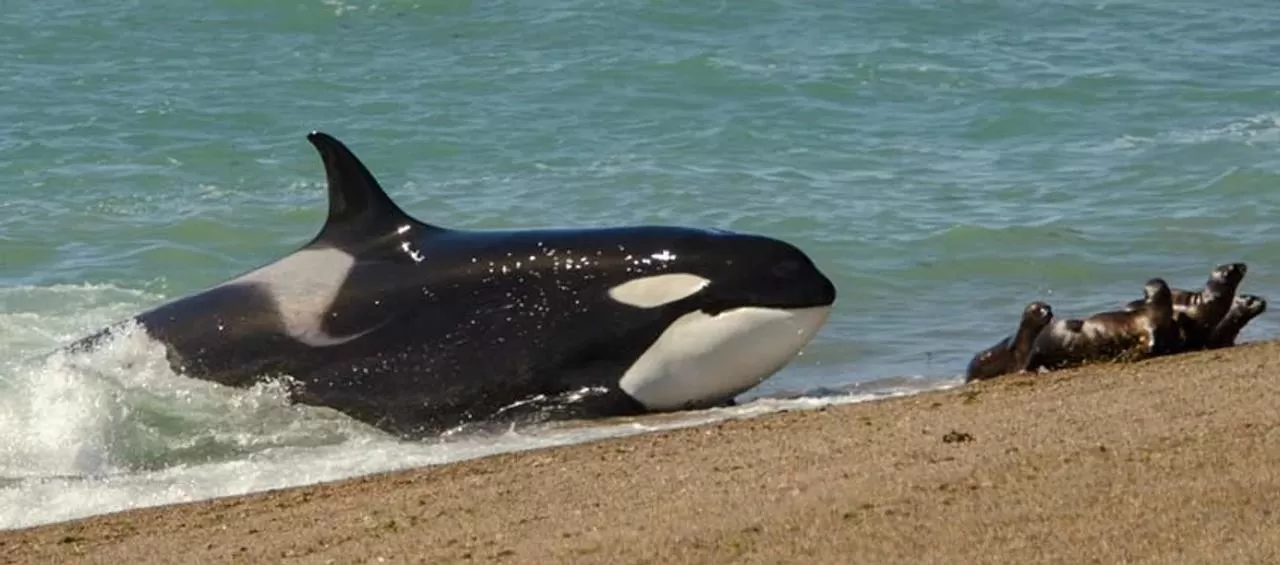 Desde un mirador, esta exhibición de audacia de las orcas no deja a nadie indiferente. Es una técnica única en el mundo, observada por primera vez en 1974 y desarrollada por ellas en el Área Natural Protegida Península Valdés, pasando de generación en generación, agrupándose en familias bajo un matriarcado, en donde los jóvenes reciben una prolongada instrucción hasta que empiecen a practicarlo, a la espera de cachorros de otras especies con poca experiencia en el mar.