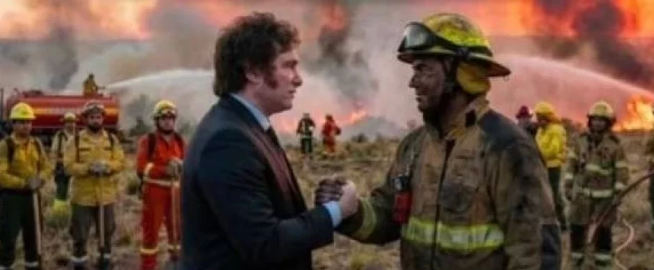 Milei agradece a los bomberos de la Patagonia con una foto trucada, pero les redujo el presupuesto casi un 80 por ciento