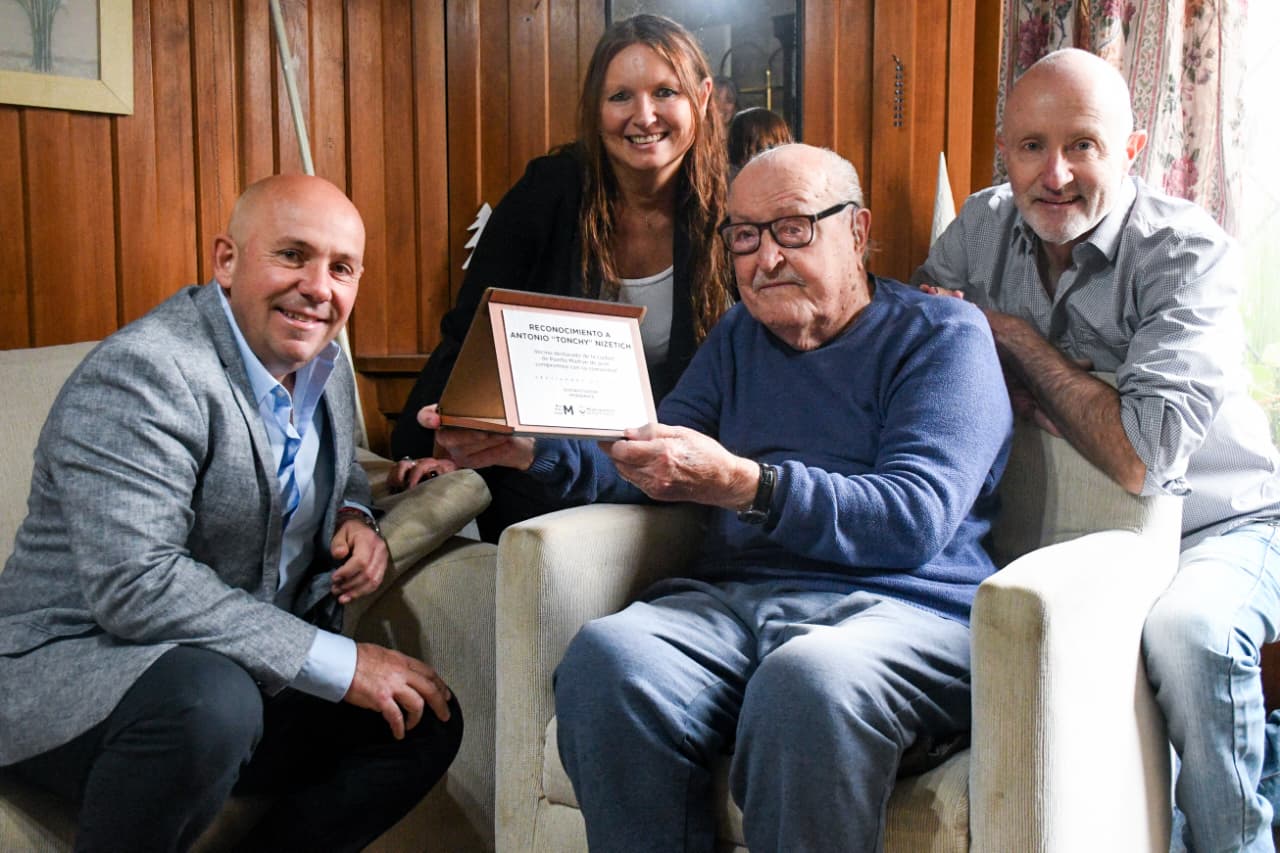«Visitamos en su casa a Antonio ‘Tonchy’ Nizetich, un vecino entrañable de la ciudad de Puerto Madryn, a quien sorprendimos y le entregamos un reconocimiento por su gran compromiso con nuestra comunidad. Agradecemos a él y a toda su familia por abrirnos las puertas de su hogar y por el hermoso momento que disfrutamos, compartiendo una linda charla con muchas anécdotas».