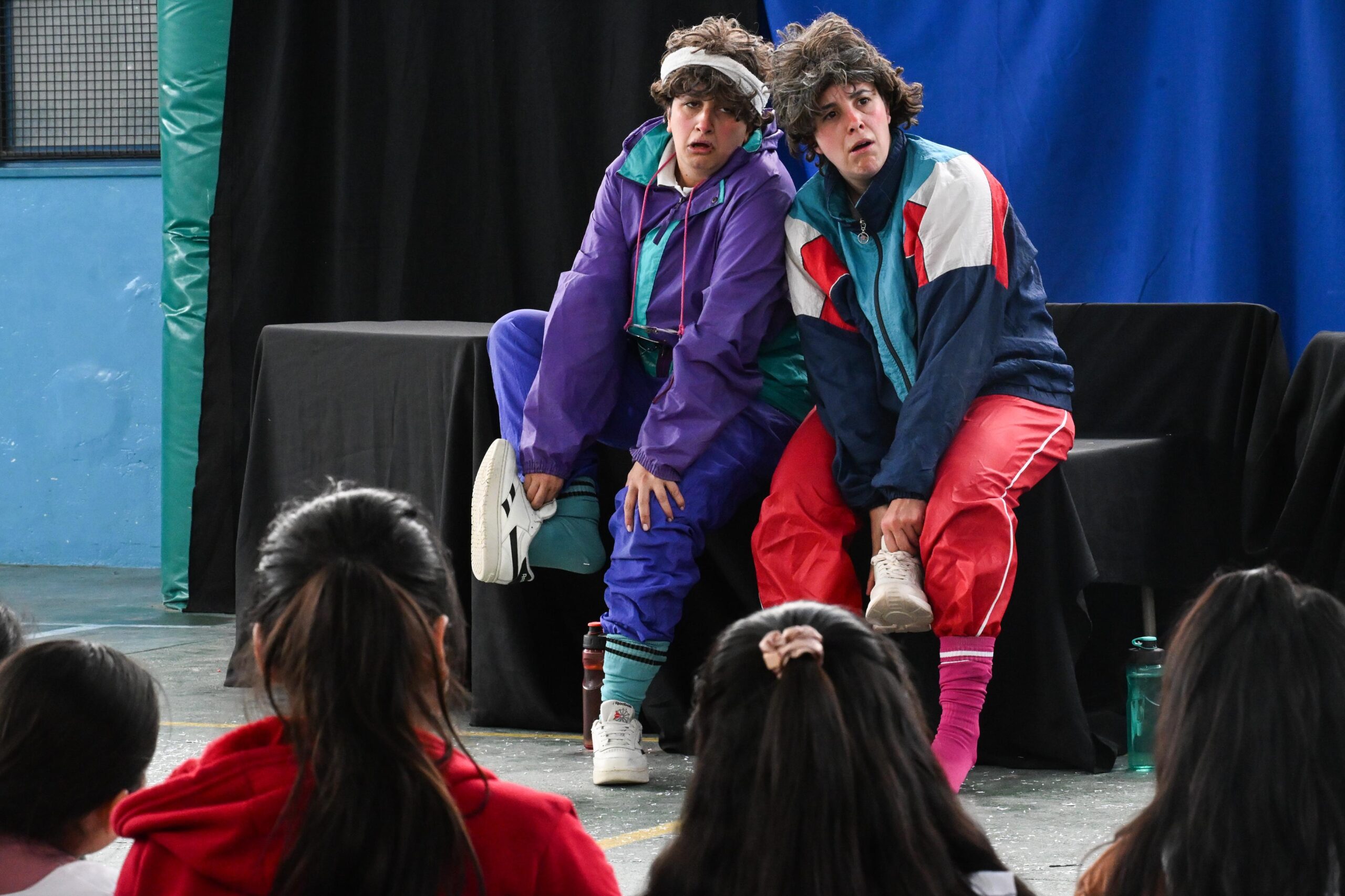 En esta oportunidad, se presentó la obra «Las Aventuras de Tita y Tula», que aborda con humor y situaciones cotidianas temas como el juego, la amistad, la discriminación, la identidad y la empatía. Este recurso teatral permitió reflexionar de manera cercana sobre la prevención de la violencia escolar y el reconocimiento de emociones.
